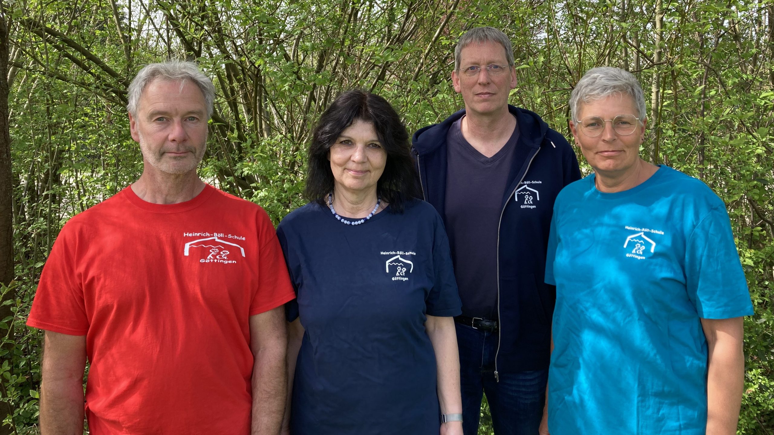 Wolfgang Schulz (Hausmeister), Martina Kolbe-Schwettmann (Schulleiterin), Marcus Gellert (Konrektor), Vera Syring (Schulsekretärin)