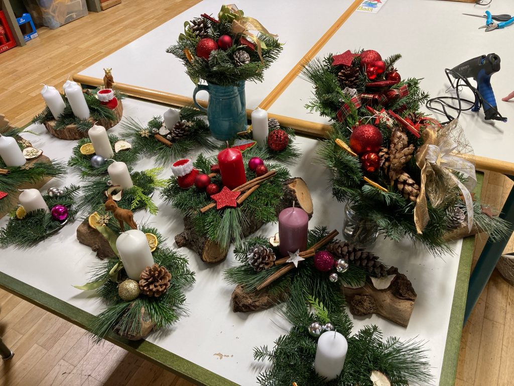 Seit der Eröffnung unserer Schulimkerei 2019 spenden REWE-Kunden regelmäßig ihre Pfandbons für den Förderverein der Schule. Auch den alljährlichen Wintermarkt der Heinrich-Böll-Schule unterstützt seitdem der REWE-Markt. So wurden im November unter der professionellen Anleitung des REWE-Floristik-Teams viele Adventsgestecke mit den Schüler/innen von „Heinrichs Naturwerkstatt“ gebastelt. Auch hier erleichterte die Aufgeschlossenheit und Freundlichkeit des REWE-Teams, jetzt mit Frau Pietschmann als neue Filialleiterin, die hoffentlich weiterhin erfolgreiche Zusammenarbeit.