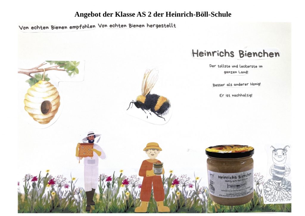 Wir, die Klasse AS 2, haben als Schülerfirma Heinrichs Naturwerkstatt beim Nachhaltigkeitswettbewerb „Projekt Erde“ wieder die Teilnahme an einem Zukunftscamp im Mai 2024 gewonnen. Hier konnten wir mit 48 weiteren Projekten unsere Schulimkerei vorstellen. Weitere Infos findet ihr hier: