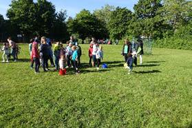 Gemeinsam macht Sport mehr Spaß und man musste nicht einfach schnell sein! Beim Sport- und Spielefest zusammen mit der Adolf-Reichwein-Grundschule kam es auf Geschicklichkeit, auf Cleverness, auf Zielgenauigkeit und gute Teamarbeit an. In altersgemischten Gruppen erzielten die Schülerinnen und Schüler erstaunliche Resultate und das abschließende Knobelspiel vereinte alle zu Schlange Heinrich.