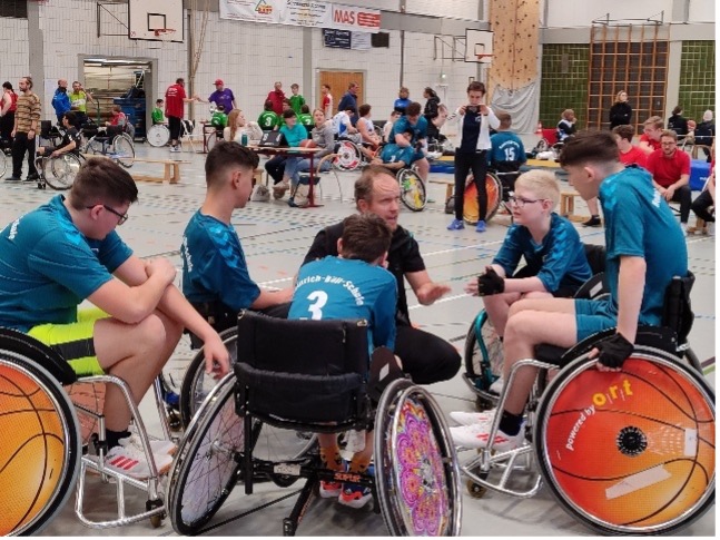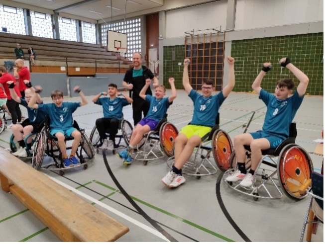 Unsere Rollstuhlbasketballmannschaft war am 3 und 4 April 2025 in Dinklage in Norddeutschland. Unter der Betreuung von Rainer Schomaker, Marianne Pecher und Denise Illing haben die Spieler mit viel Einsatz, Schweiß und überlegen den ersten Platz bei dem Rollstuhlbasketballturnier der KME-Schulen erreicht und sind jetzt Landessieger in dieser Kategorie. Es war ein großartiger Erfolg für das Team, das hart dafür gekämpft hat. Wir sind sehr stolz auf ihre Leistung und den tollen Erfolg!